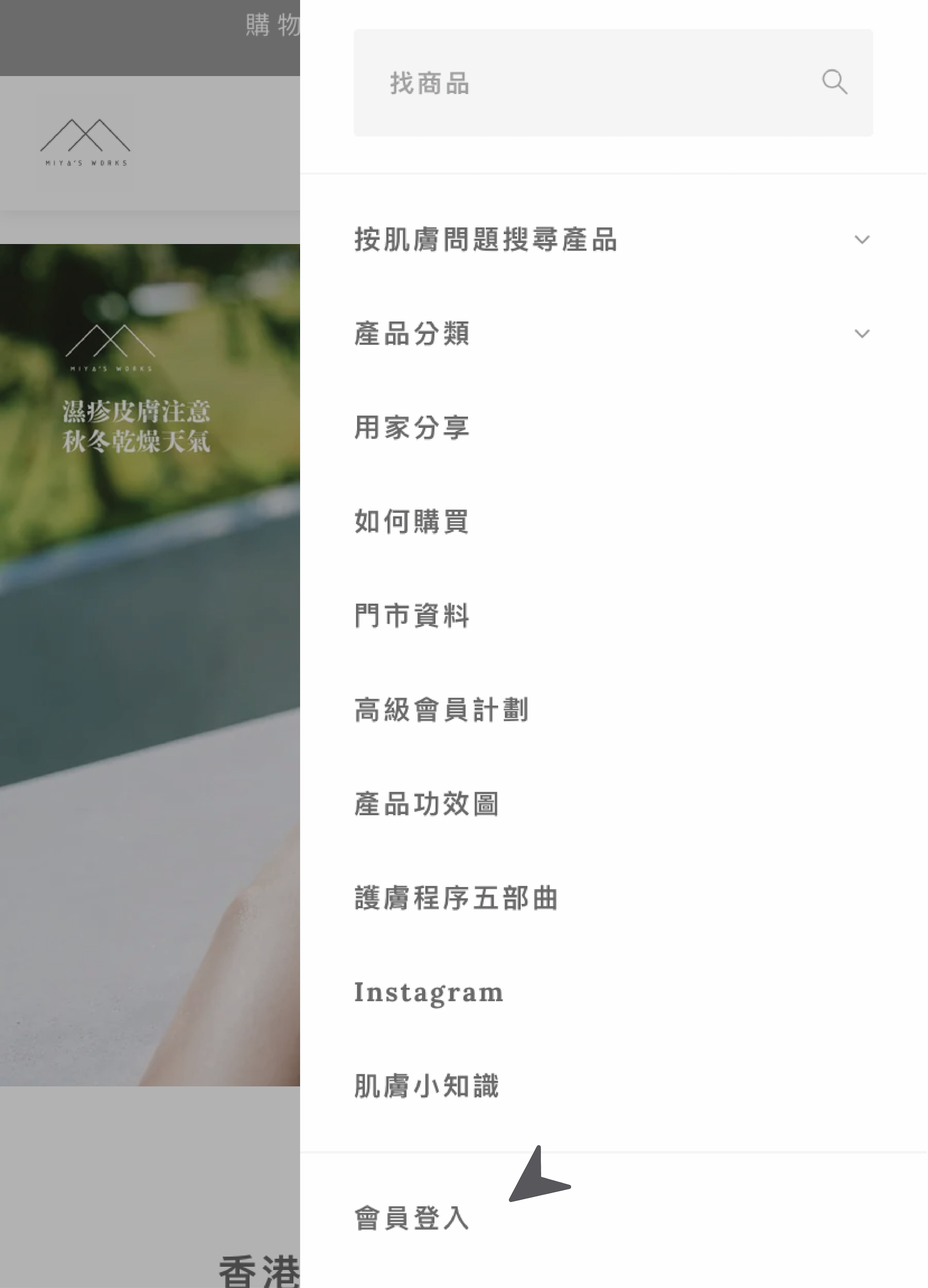打開右上角選單中選取會員登入
