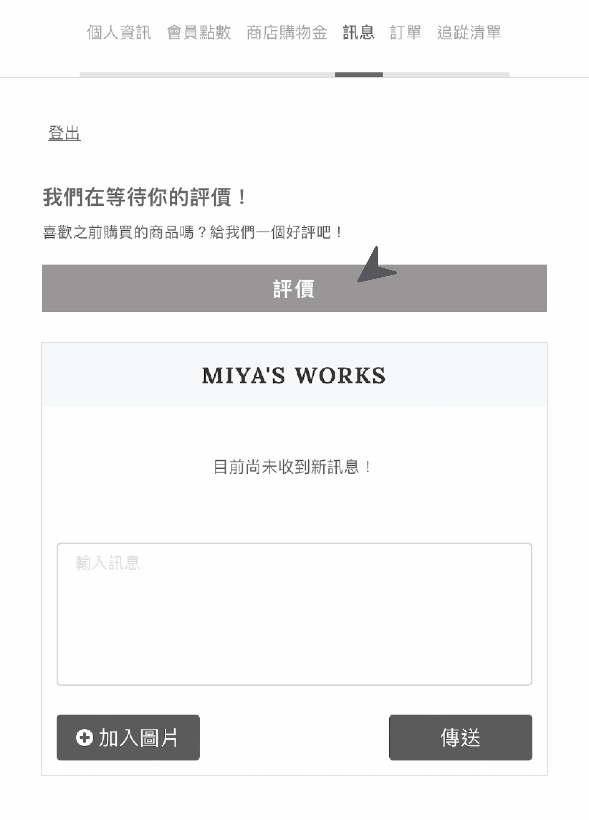 點選訊息,進入訂單評價版面