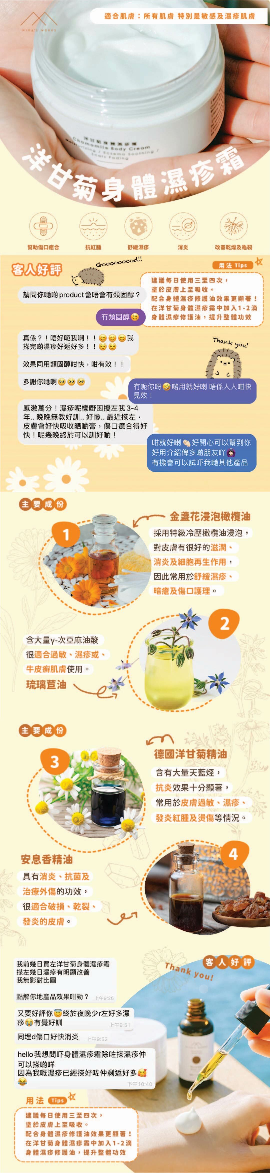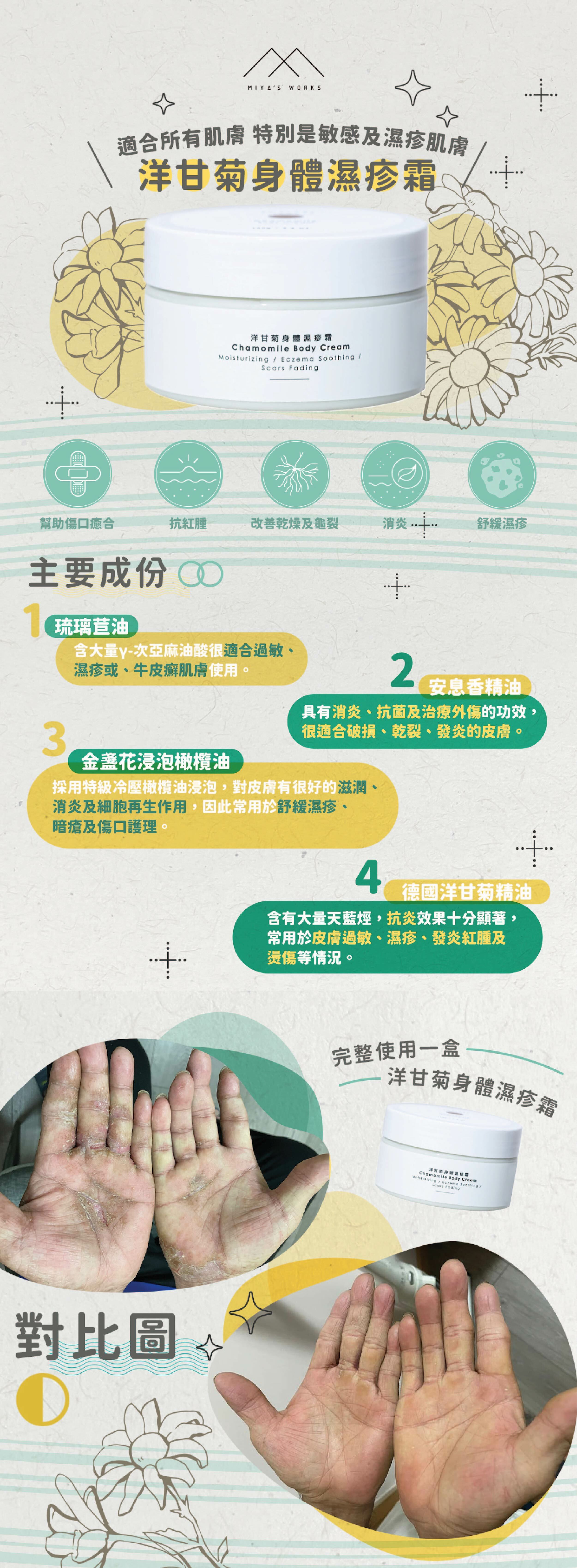 舒緩濕疹 消炎 幫助傷口癒合 改善乾燥及龜裂